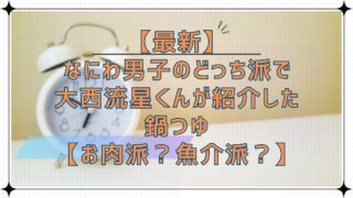 なにわ男子のどっち派!? 【最新】なにわ男子のどっち派で大西流星が紹介した鍋つゆ【お肉派?魚介派?】 1月30日(金)放送めざましテレビ内コーナーなにわ男子のどっち派!?では【最新鍋つゆメインはガッツリお肉派?うまみ魚介派?】を大西流星くんがリポート🎤 この記事では、大西くんが紹介した鍋つゆをまとめています! あす30日(金)の「#なにわ男... 2026.01.30 なにわ男子のどっち派!?